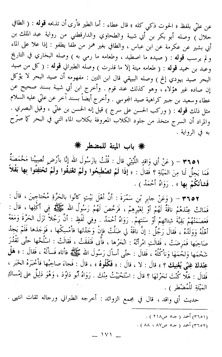 3651 - (عَنْ أَبِي وَاقِدٍ اللَّيْثِيِّ قَالَ: «قُلْتُ يَا رَسُولَ اللَّهِ إنَّا بِأَرْضٍ تُصِيبُنَا مَخْمَصَةٌ فَمَا يَحِلُّ لَنَا مِنْ الْمَيْتَةِ؟ فَقَالَ: إذَا لَمْ تَصْطَبِحُوا وَلَمْ تَعْتَبِقُوا وَلَمْ تَحْتَفِئُوا بِهَا بَقْلًا فَشَأْنُكُمْ بِهَا» . رَوَاهُ أَحْمَدُ) .