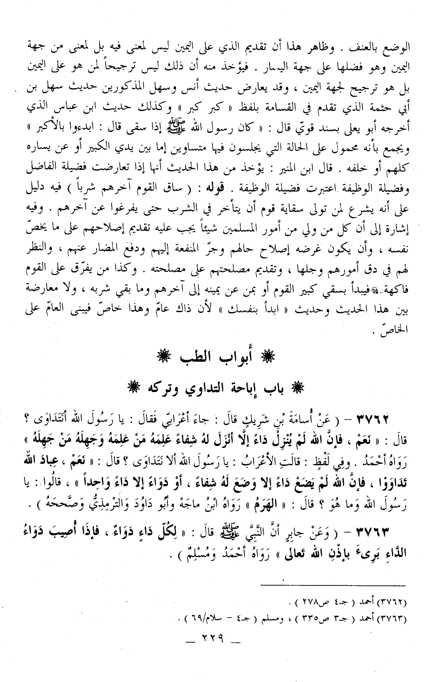 3762 - (عَنْ أُسَامَةَ بْنِ شَرِيكٍ قَالَ: «جَاءَ أَعْرَابِيٌّ فَقَالَ: يَا رَسُولَ اللَّهِ أَنَتَدَاوَى؟ قَالَ: نَعَمْ، فَإِنَّ اللَّهَ لَمْ يُنْزِلْ دَاءً إلَّا أَنْزَلَ لَهُ شِفَاءً عَلِمَهُ مَنْ عَلِمَهُ وَجَهِلَهُ مَنْ جَهِلَهُ» رَوَاهُ أَحْمَدُ.