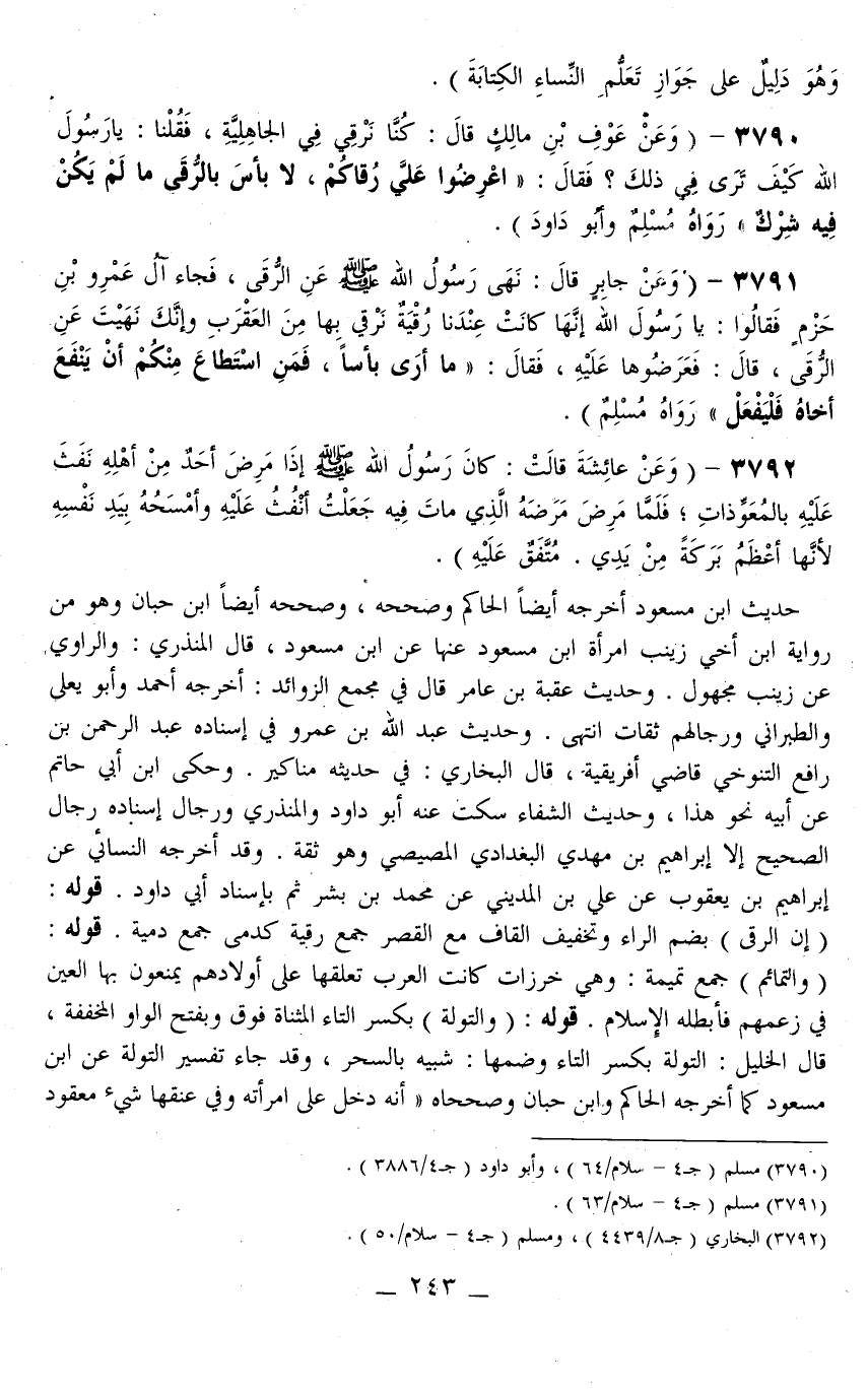 حَدِيثُ ابْنِ مَسْعُودٍ أَخْرَجَهُ أَيْضًا الْحَاكِمُ وَصَحَّحَهُ.، وَصَحَّحَهُ أَيْضًا ابْنُ حِبَّانَ وَهُوَ مِنْ رِوَايَةِ ابْنِ أَخِي زَيْنَبَ امْرَأَةِ ابْنِ مَسْعُودٍ عَنْهَا عَنْ ابْنِ مَسْعُودٍ، قَالَ الْمُنْذِرِيُّ: وَالرَّاوِي عَنْ زَيْنَبَ مَجْهُولٌ. وَحَدِيثُ عُقْبَةَ بْنِ عَامِرٍ قَالَ فِي مَجْمَعِ الزَّوَائِدِ: أَخْرَجَهُ أَحْمَدُ وَأَبُو يَعْلَى وَالطَّبَرَانِيُّ وَرِجَالُهُمْ ثِقَاتٌ انْتَهَى.