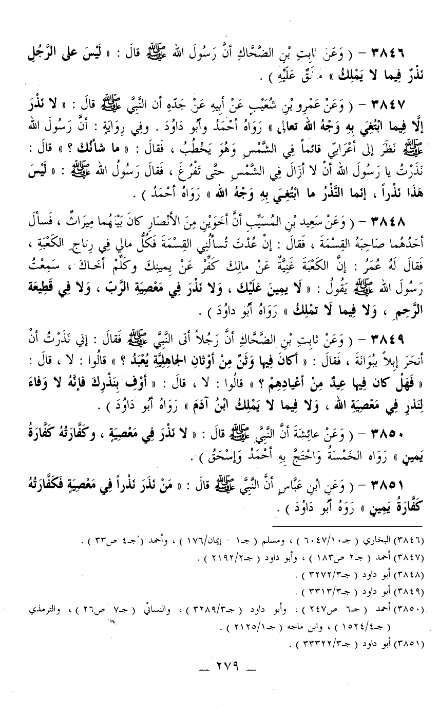 3850 - (وَعَنْ عَائِشَةَ أَنَّ النَّبِيَّ - صَلَّى اللَّهُ عَلَيْهِ وَسَلَّمَ - قَالَ: «لَا نَذْرَ فِي مَعْصِيَةٍ، وَكَفَّارَتُهُ كَفَّارَةُ يَمِينٍ» رَوَاهُ الْخَمْسَةُ وَاحْتَجَّ بِهِ أَحْمَدُ وَإِسْحَاقُ) .