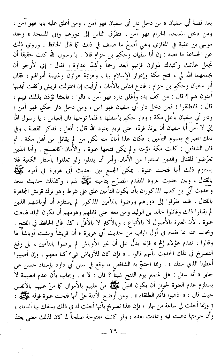 ـــــــــــــــــــــــــــــQبَعْدَ قِصَّةِ أَبِي سُفْيَانَ «مَنْ دَخَلَ دَارَ أَبِي سُفْيَانَ فَهُوَ آمِنٌ، وَمَنْ أَغْلَقَ عَلَيْهِ بَابَهُ فَهُوَ آمِنٌ، وَمَنْ دَخَلَ الْمَسْجِدَ الْحَرَامَ فَهُوَ آمِنٌ، فَتَفَرَّقَ النَّاسُ إلَى دُورِهِمْ وَإِلَى الْمَسْجِدِ» وَعِنْدَ مُوسَى بْنِ عُقْبَةَ فِي الْمَغَازِي وَهِيَ أَصَحُّ مَا صُنِّفَ فِي ذَلِكَ كَمَا قَالَ الْحَافِظُ.