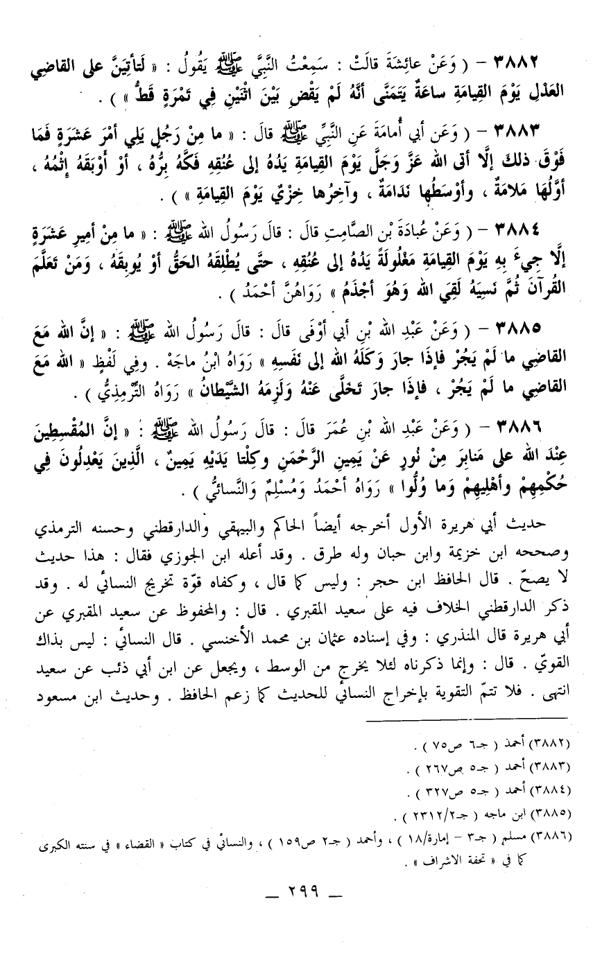 3886 - (وَعَنْ عَبْدِ اللَّهِ بْنِ عُمَرَ قَالَ: قَالَ رَسُولُ اللَّهِ - صَلَّى اللَّهُ عَلَيْهِ وَسَلَّمَ -: «إنَّ الْمُقْسِطِينَ عِنْدَ اللَّهِ عَلَى مَنَابِرَ مِنْ نُورٍ عَنْ يَمِينِ الرَّحْمَنِ وَكِلْتَا يَدَيْهِ يَمِينٌ، الَّذِينَ يَعْدِلُونَ فِي حُكْمِهِمْ وَأَهْلِيهِمْ وَمَا وُلُّوا» رَوَاهُ أَحْمَدُ وَمُسْلِمٌ وَالنَّسَائِيُّ) .