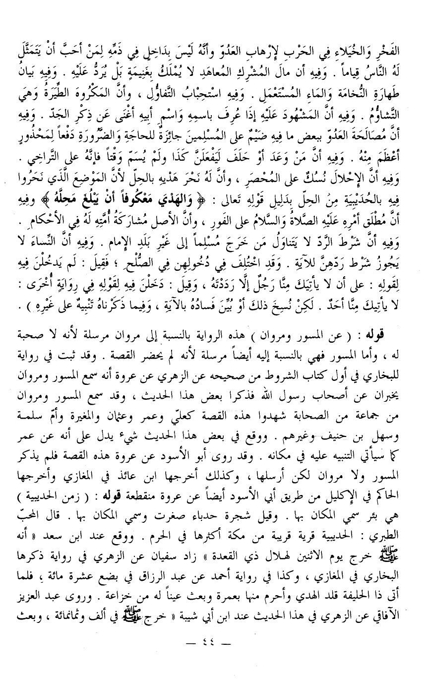ـــــــــــــــــــــــــــــQقَوْلُهُ: (عَنْ الْمِسْوَرِ وَمَرْوَانَ) هَذِهِ الرِّوَايَةُ بِالنِّسْبَةِ إلَى مَرْوَانَ مُرْسَلَةٌ لِأَنَّهُ لَا صُحْبَةَ لَهُ، وَأَمَّا الْمِسْوَرُ فَهِيَ بِالنِّسْبَةِ إلَيْهِ أَيْضًا مُرْسَلَةٌ لِأَنَّهُ لَمْ يَحْضُرْ الْقِصَّةَ. وَقَدْ ثَبَتَ فِي رِوَايَةٍ لِلْبُخَارِيِّ فِي أَوَّلِ كِتَابِ الشُّرُوطِ مِنْ صَحِيحِهِ عَنْ الزُّهْرِيِّ عَنْ عُرْوَةَ أَنَّهُ سَمِعَ (الْمِسْوَرَ) وَمَرْوَانَ يُخْبِرَانِ عَنْ أَصْحَابِ رَسُولِ اللَّهِ فَذَكَرَا بَعْضَ هَذَا الْحَدِيثِ، وَقَدْ سَمِعَ الْمِسْوَرُ وَمَرْوَانُ مِنْ جَمَاعَةٍ مِنْ الصَّحَابَةِ شَهِدُوا هَذِهِ الْقِصَّةَ كَعَلِيٍّ وَعُمَرَ وَعُثْمَانَ وَالْمُغِيرَةِ وَأُمِّ سَلَمَةَ وَسَهْلِ بْنِ حُنَيْفٍ وَغَيْرِهِمْ. وَوَقَعَ فِي بَعْضِ هَذَا الْحَدِيثِ شَيْءٌ يَدُلُّ عَلَى أَنَّهُ عَنْ عُمَرَ كَمَا سَيَأْتِي التَّنْبِيهُ عَلَيْهِ فِي مَكَانِهِ. وَقَدْ رَوَى أَبُو الْأَسْوَدِ عَنْ عُرْوَةَ هَذِهِ الْقِصَّةَ فَلَمْ يَذْكُرْ الْمِسْوَرَ وَلَا مَرْوَانَ لَكِنْ أَرْسَلَهَا، وَكَذَلِكَ أَخْرَجَهَا ابْنُ عَائِذٍ فِي الْمَغَازِي وَأَخْرَجَهَا الْحَاكِمُ فِي الْإِكْلِيلِ مِنْ طَرِيقِ أَبِي الْأَسْوَدِ أَيْضًا عَنْ عُرْوَةَ مُنْقَطِعَةً
