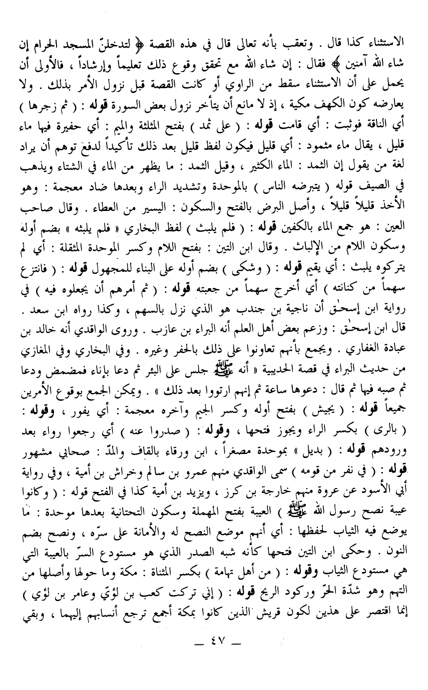 ـــــــــــــــــــــــــــــQالِاسْتِثْنَاءِ كَذَا قَالَ. وَتُعُقِّبَ بِأَنَّهُ تَعَالَى قَالَ فِي هَذِهِ الْقِصَّةِ {لَتَدْخُلُنَّ الْمَسْجِدَ الْحَرَامَ إِنْ شَاءَ اللَّهُ آمِنِينَ} [الفتح: 27] فَقَالَ: إنْ شَاءَ اللَّهُ مَعَ تَحَقُّقِ وُقُوعِ ذَلِكَ تَعْلِيمًا وَإِرْشَادًا، فَالْأَوْلَى أَنْ يُحْمَلَ عَلَى أَنَّ الِاسْتِثْنَاءَ سَقَطَ مِنْ الرَّاوِي أَوْ كَانَتْ الْقِصَّةُ قَبْلَ نُزُولِ الْأَمْرِ بِذَلِكَ. وَلَا يُعَارِضُهُ كَوْنُ الْكَهْفِ مَكِّيَّةٌ، إذْ لَا مَانِعَ أَنْ يَتَأَخَّرَ نُزُولُ بَعْضِ السُّورَةِ قَوْلُهُ: (ثُمَّ زَجَرَهَا) أَيْ النَّاقَةَ فَوَثَبَتْ: أَيْ قَامَتْ