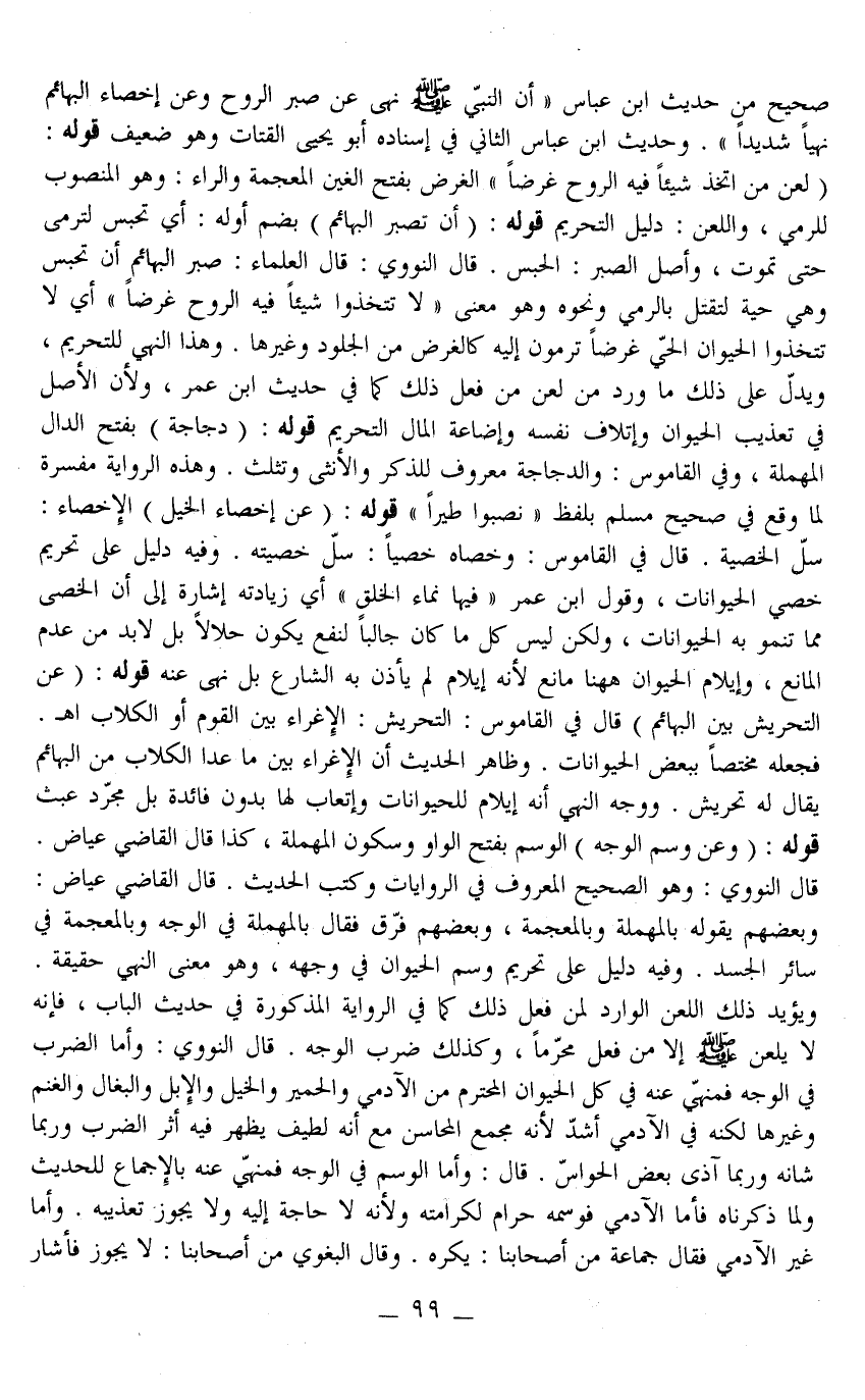 ـــــــــــــــــــــــــــــQصَحِيحٍ مِنْ حَدِيثِ ابْنِ عَبَّاسٍ «أَنَّ النَّبِيَّ - صَلَّى اللَّهُ عَلَيْهِ وَسَلَّمَ - نَهَى عَنْ صَبْرِ الرُّوحِ وَعَنْ إخْصَاءِ الْبَهَائِمِ نَهْيًا شَدِيدًا» .