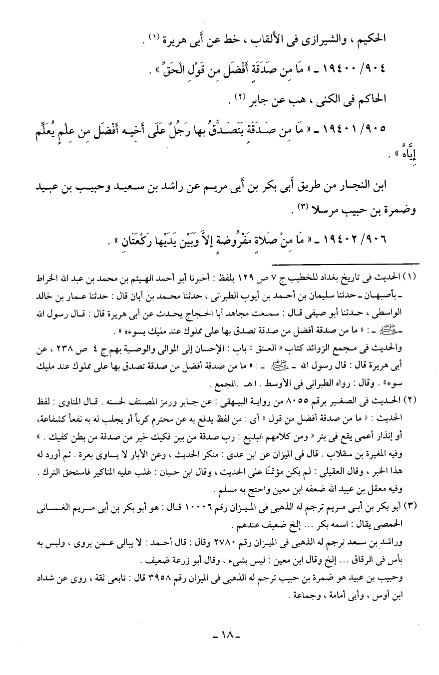 904/ 19400 - "مَا مِن صَدَقَةٍ أَفْضَل مِن قَوْلِ الْحَقِّ".