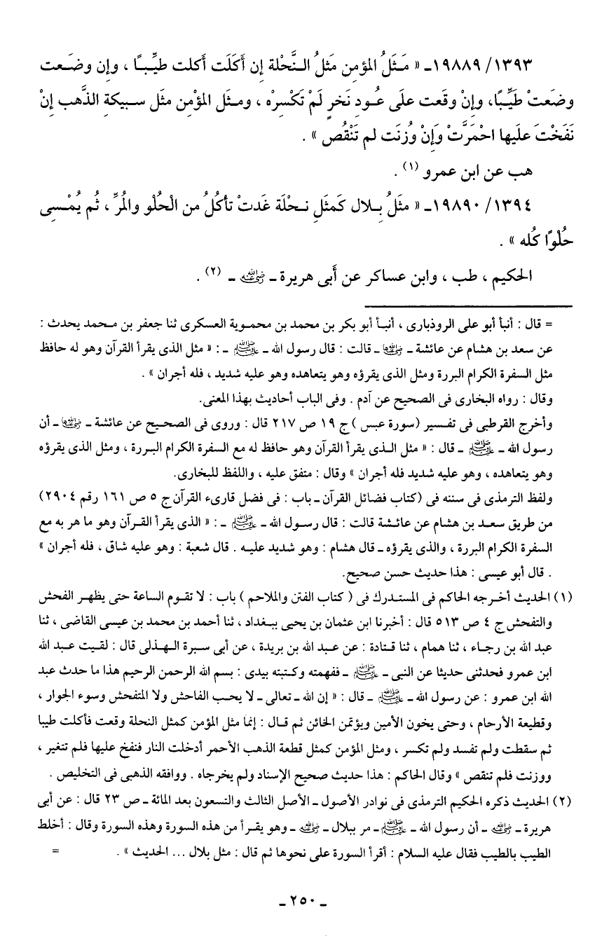 1394/ 19890 - "مثَلُ بِلال كَمثَلِ نحْلَة غَدتْ تأْكُلُ من الْحُلو والمُرِّ، ثُم يُمْسِى حُلوًا كله".