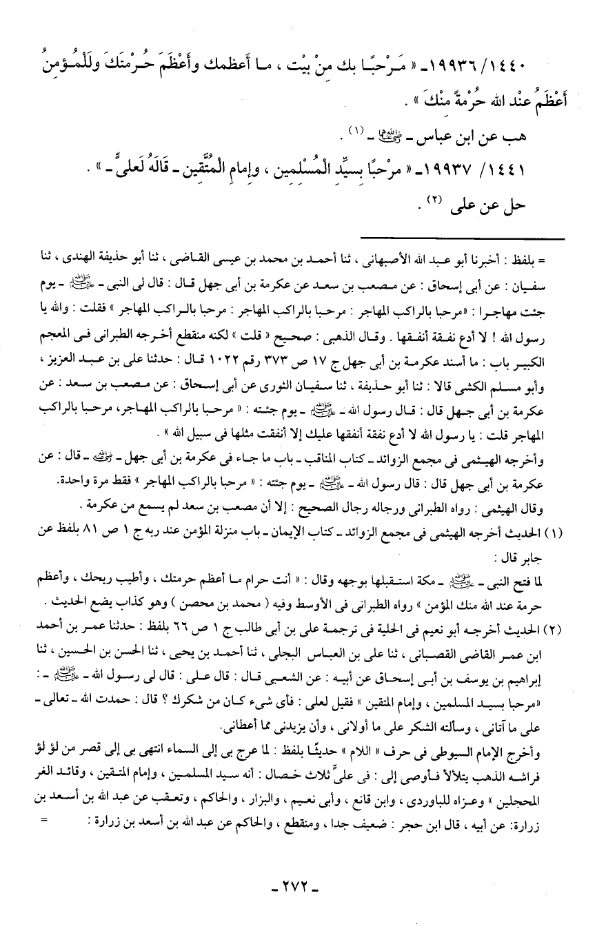 1440/ 19936 - "مَرْحبًا بك مِنْ بيت، ما أَعظمك وأَعْظَمَ حُرْمتَكَ ولَلْمُؤمِنُ أَعْظَمُ عنْد الله حُرْمةً مِنْكَ".