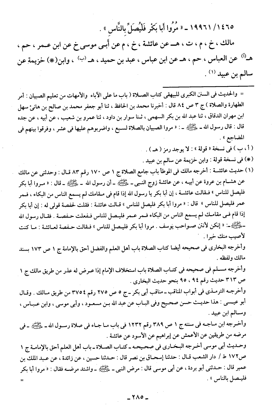 1465/ 19961 - "مُرُوا أَبا بَكْر فَليُصَلِّ بِالنَّاسِ".