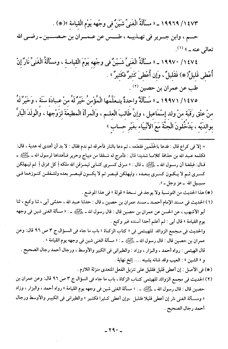 1473/ 19969 - "مسْألةُ الغَنيِّ شَينٌ فِي وجْهه يَوْم القِيامةِ" (*).