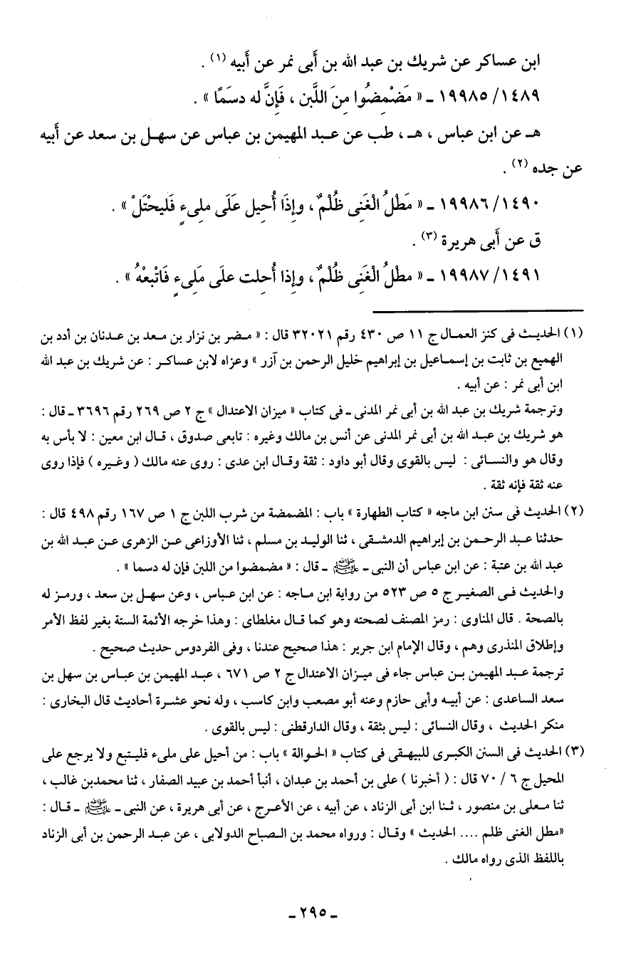1491/ 19987 - "مطلُ الغَنِى ظُلمٌ، وإذا أُحِلت علَى مَلِئٍ فَاتْبعْهُ".