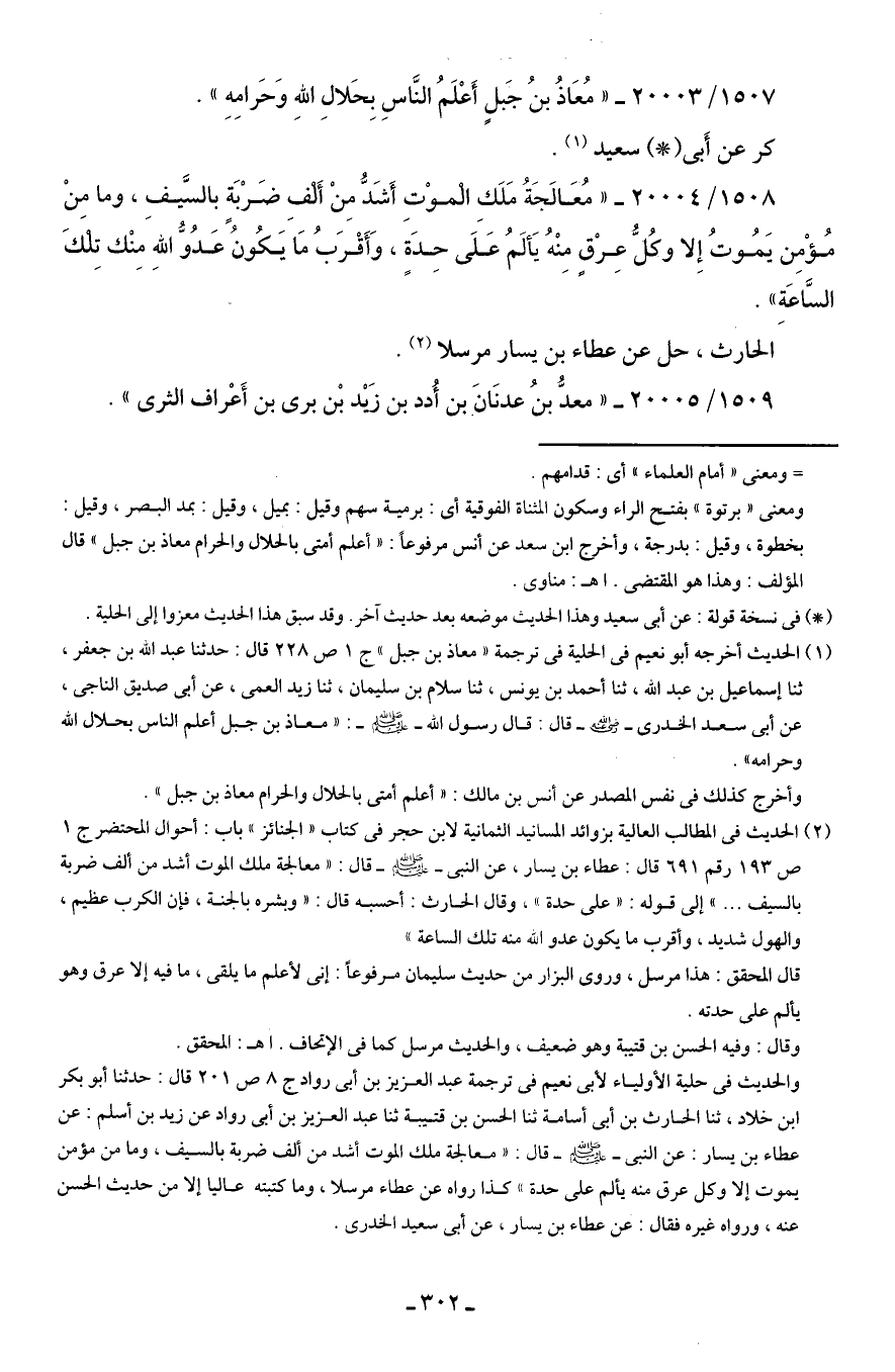 1507/ 20003 - "مُعَاذُ بن جَبلٍ أَعْلَمُ النَّاسِ بِحَلالِ اللهِ وَحَرامِهِ".