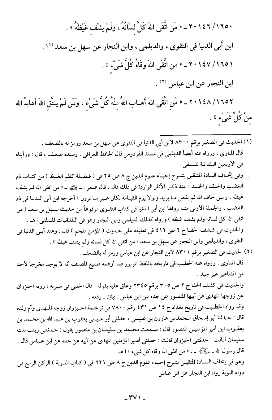1650/ 20146 - "مَن اتَّقَى اللهَ كَلَّ لِسَانُهُ، ولَمْ يشْفِ غَيظَهُ".