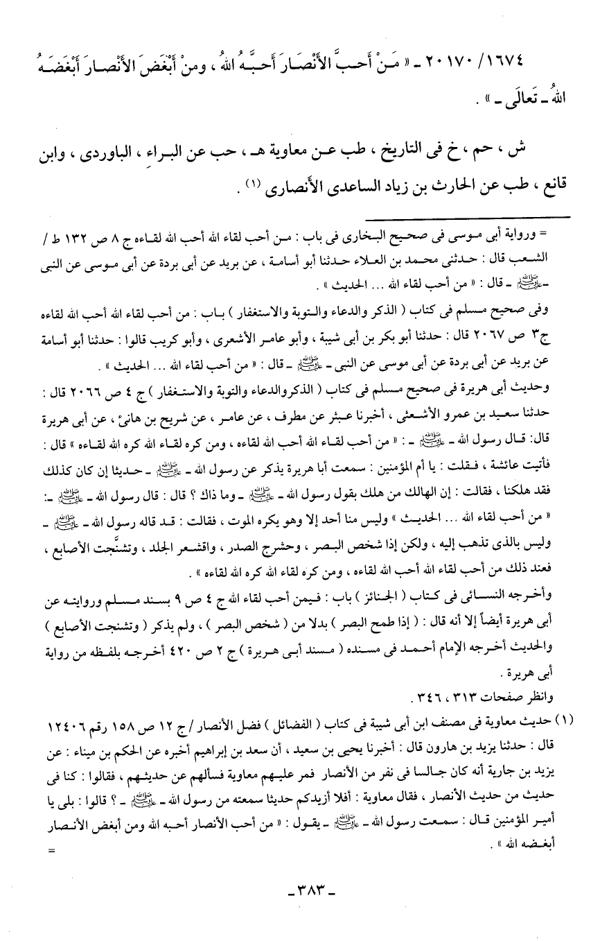 1674/ 20170 - "مَنْ أَحبَّ الأَنْصَارَ أَحبَّهُ اللهُ، ومنْ أَبْغَضَ الأَنْصارَ أَبْغَضَهُ اللهُ -تَعالى-".