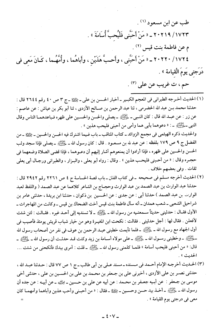 1723/ 20219 - "مَنْ أَحَبَّنى فَلْيُحِبَّ أُسَامَةَ".