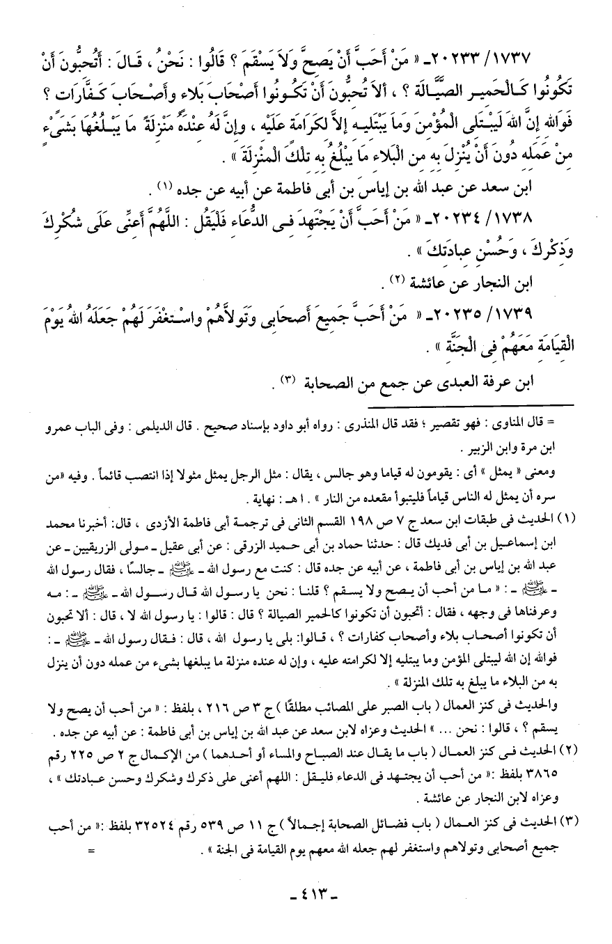1739/ 20235 - "مَنْ أَحَبَّ جَمِيعَ أَصحَابِى وَتَولَّاهُمْ واسْتغْفَرَ لَهُمْ جَعَلَهُ اللهُ يَوْمَ الْقِيَامَةِ مَعَهُمْ فِي الْجَنَّةِ".