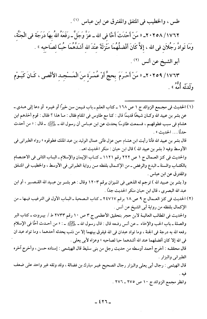 1763/ 20259 - "مَنْ أَحْرَمَ بِحجٍّ أَوْ عُمْرَةٍ مِنَ الْمَسْجِدِ الأَقْصى، كَانَ كَيَوْم وَلَدَتْه أُمُّهُ".