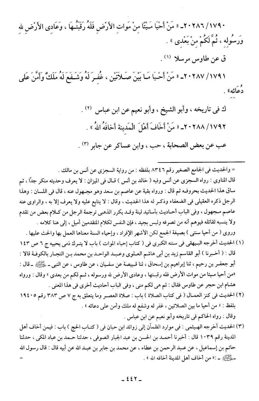 1790/ 20286 - "مَنْ أَحْيَا مَيتًا مِنْ مَواتِ الأَرْضِ فَلَهُ رَقَبَتُهَا، وَعَادِى الأَرْضِ للهِ وَرسُولِهِ، ثُمَّ لَكُمْ مِنْ بَعْدِى".