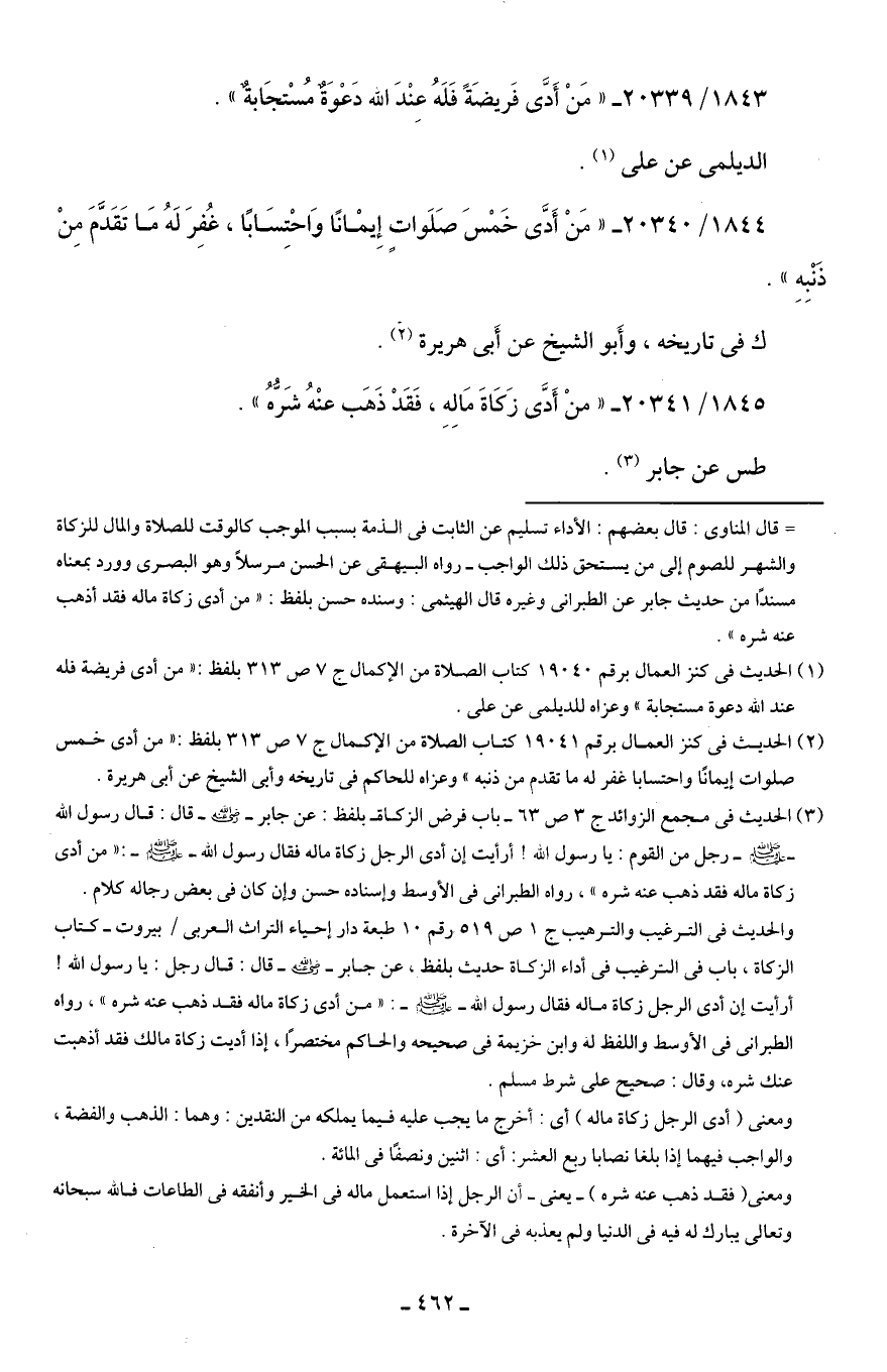 1845/ 20341 - "منْ أَدَّى زَكَاةَ مَالِهِ، فَقَدْ ذَهَب عنْهُ شَرُّهُ".