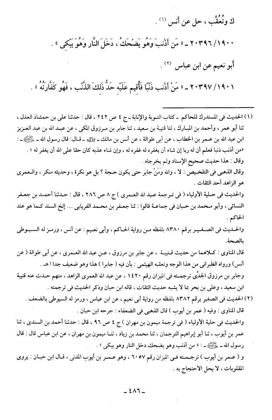 1900/ 20396 - "مَن أَذْنبَ وَهُو يَضْحَكُ، دَخَلَ النَّار وَهُوَ يَبْكِي".
