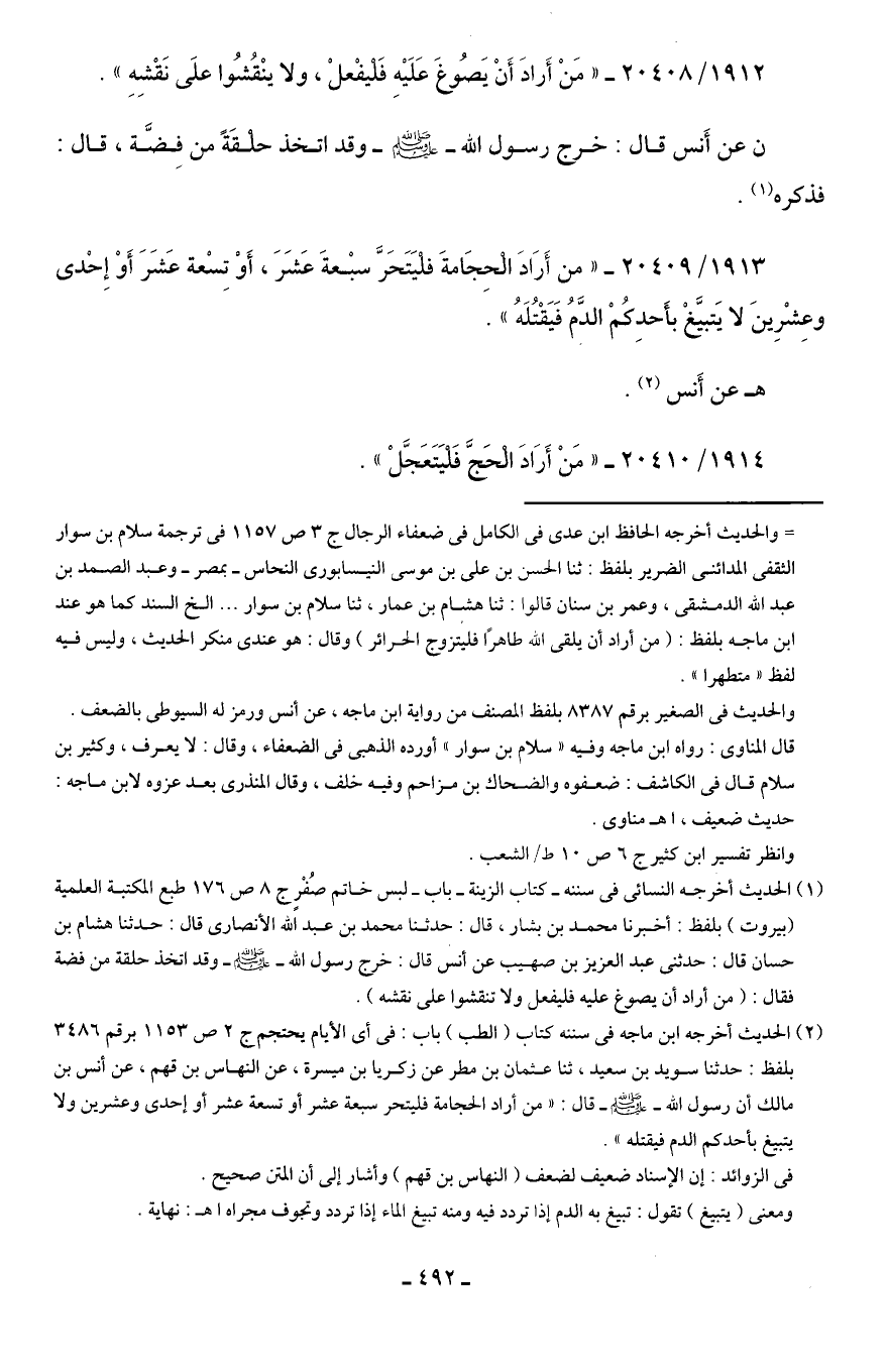 1914/ 20410 - "مَنْ أَرَادَ الْحَجَّ فَلْيَتَعَجَّلْ".