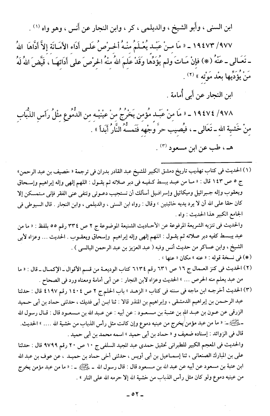(¬2) الحديث في كنز العمال ج 16 ص 631 رقم 6134 كتاب الوديعة من قسم الأقوال -الإكمال- قال: "ما من عبد يعلم منه الحرص ... " الحديث وعزاه لابن النجار: عن أبي أمامة ومعناه ورد في الصحاح.