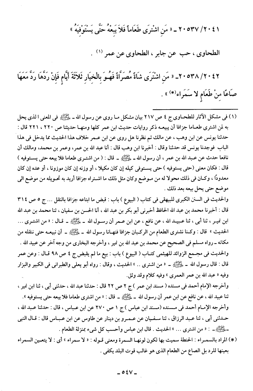 2041/ 20537 - "مَنِ اشْترَى طَعَامًا فَلَا يَبِعْهُ حَتَّى يَسْتَوْفِيَهُ".