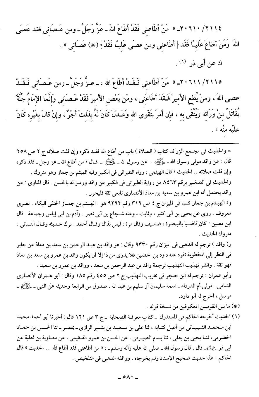 2114/ 20610 - "مَنْ أَطَاعنِى فَقَدْ أَطَاعَ اللهَ -عَزَّ وَجَلَّ- ومن عَصَانِى فقد عَصَى اللهَ وَمَنْ أطاعَ عَليًّا فَقَد [أَطَاعنِى ومن عصَى عَلِيًّا فَقَدْ] (*) عَصَانِى".