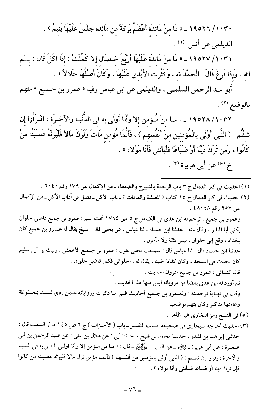 (¬2) الحديث في كنز العمال ج 15 كتاب " المعيشة والعادات "- باب الأكل- فصل في آداب الأكل- من الإكمال ص 257 رقم 48048.
