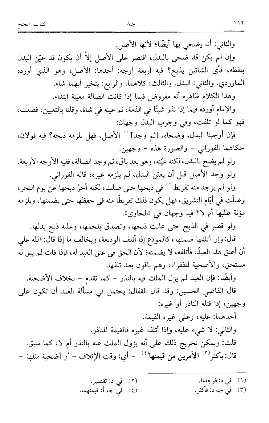وإن لم يكن قد ضحى بالبدل، اقتصر على الأصل إلا أن يكون قد عين البدل بلفظه، فأي الشاتين يذبح؟ فيه أربعة أوجه: أحدها: الأصل، وهو الذي أورده الماوردي. والثاني: البدل. والثالث: كلاهما. والرابع: يتخير أيهما شاء.