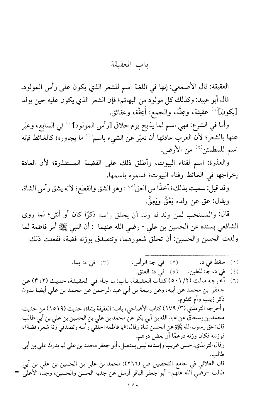 العقيقة: قال الأصمعي: إنها في اللغة اسم للشعر الذي يوكن على رأس المولود.