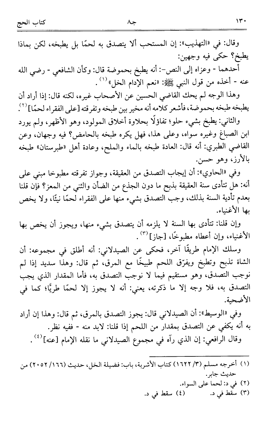 وقال: في "التهذيب": إن المستحب ألا يتصدق به لحماً بل يطبخه، لكن بماذا يطبخ؟ حكى فيه وجهين: