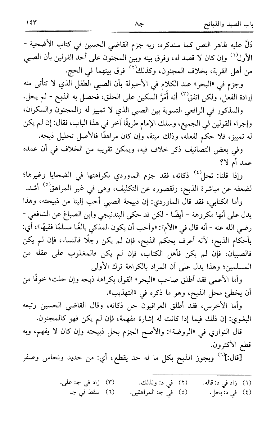 وجزم في "البحر" عند الكلام في الأحبولة بأن الصبي الطفل الذي لا تتأتى منه إرادة الفعل، ولكن اتفق أنه أمر السكين على الحلق، فحصل به الذبح- لم يحل.