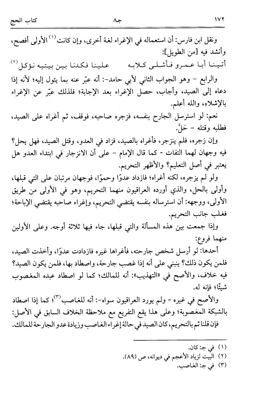 ولو لم يزجره، لكنه أغراه؛ فازداد عدواً وحمواً، فوجهان مرتبان على التي قبلها، وأولى بالحل، والذي أورده العراقيون منهما التحريم، وهو في الأولى من طريق الأولى، ووجهه: أن استرساله بنفسه يقتضي التحريم، وإغراء صاحبه يقتضي الإباحة؛ فغلب جانب التحريم.