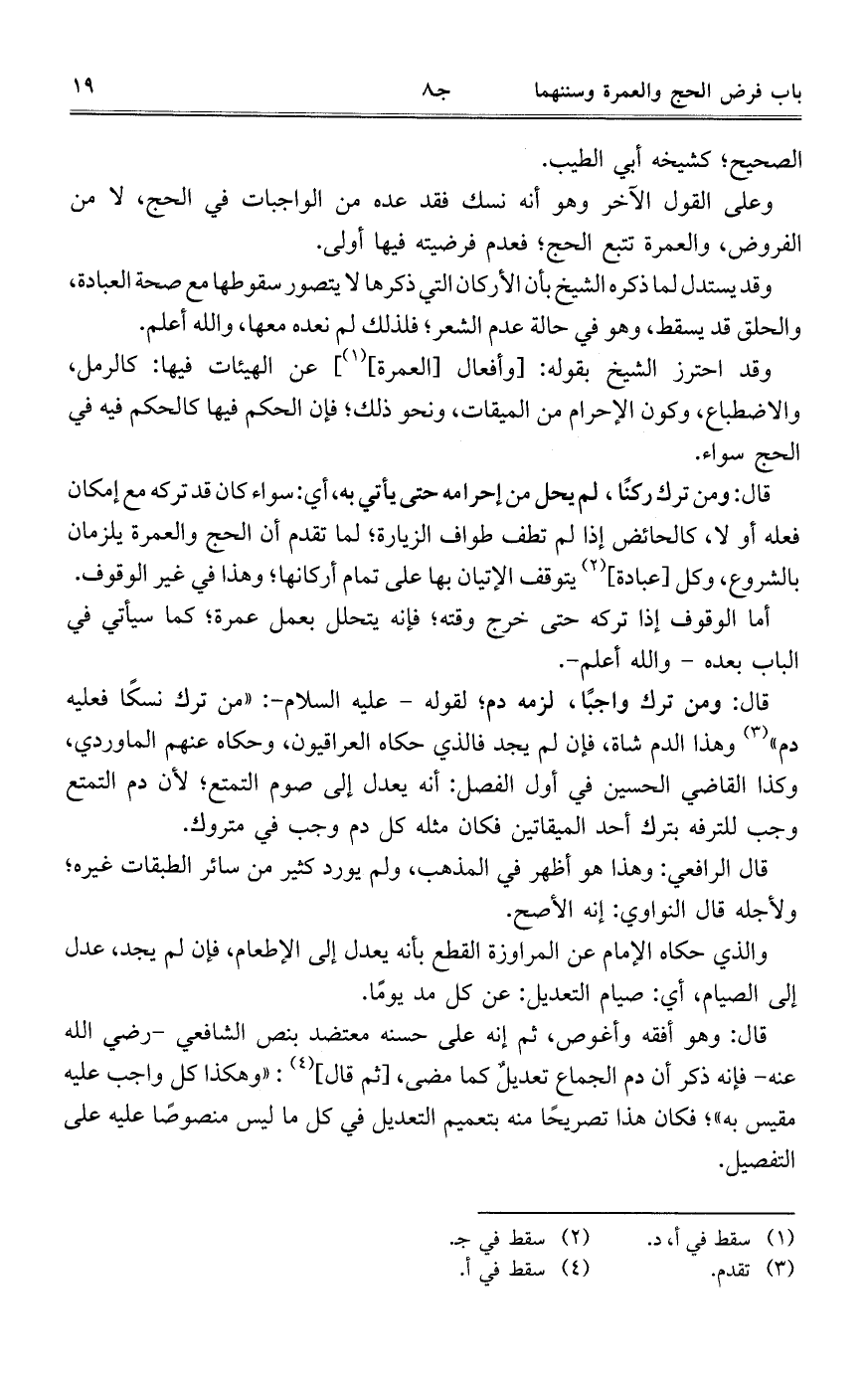 وقد احترز الشيخ بقوله: [وأفعال [العمرة]] عن الهيئات فيها: كالرمل، والاضطباع، وكون الإحرام من الميقات، ونحو ذلك؛ فإن الحكم فيها كالحكم فيه في الحج سواء.