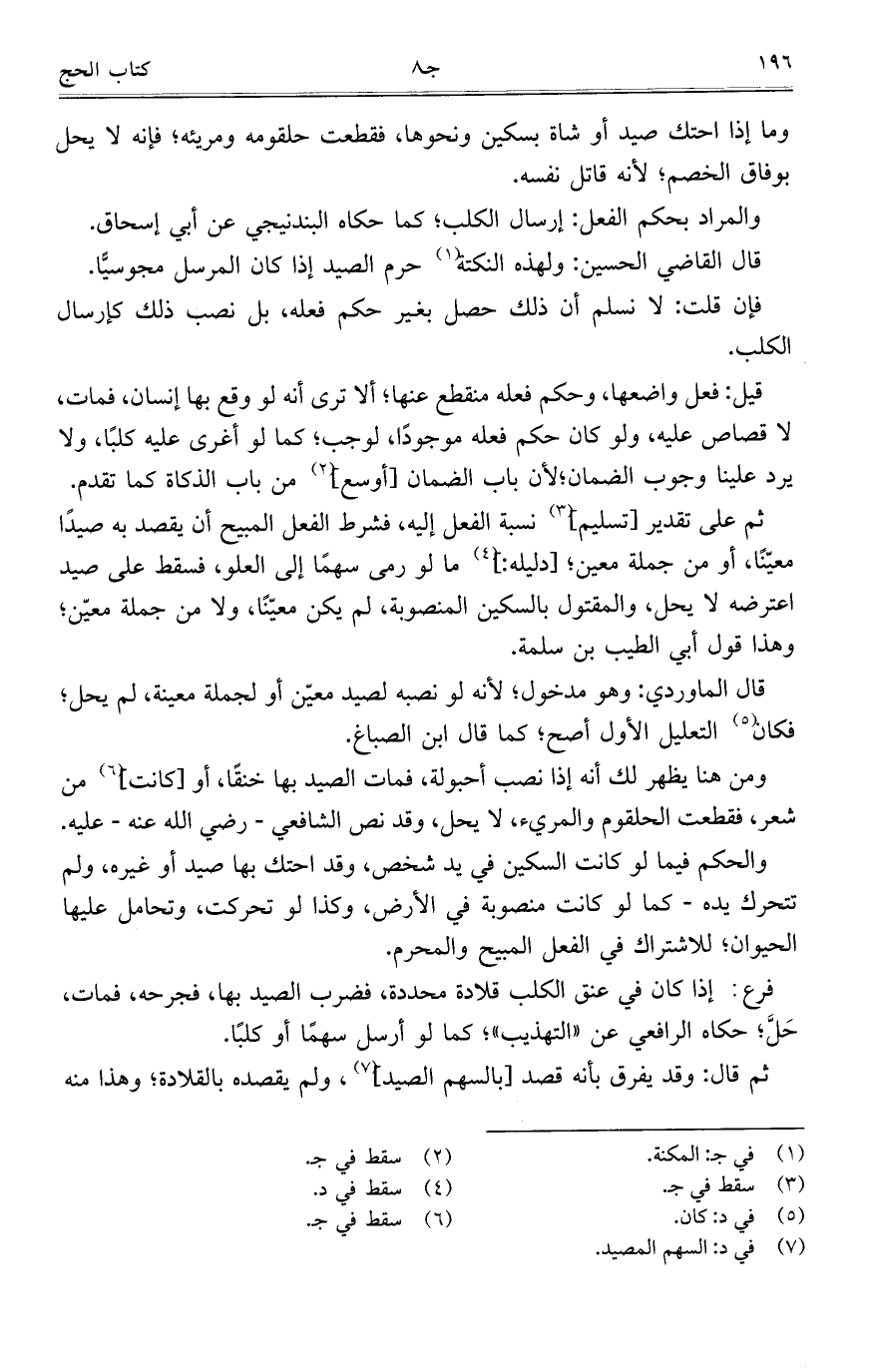 قال الماوردي: وهو مدخول؛ لأنه لو نصبه لصيد معين أو لجملة معينة، لم يحل؛ فكان التعليل الأول أصح؛ كما قال ابن الصباغ.