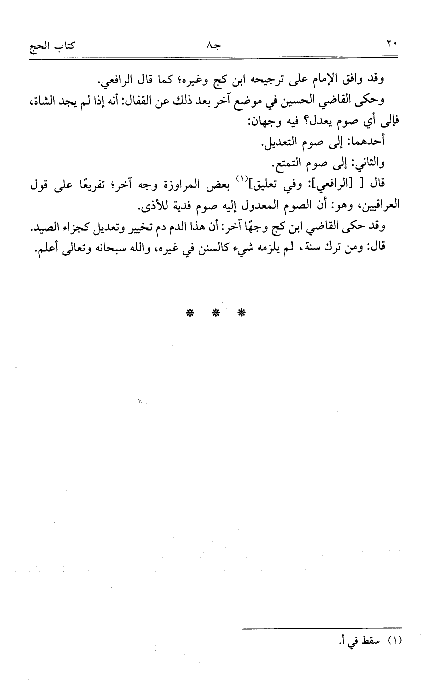 قال: ومن ترك سنة، لم يلزمه شيء كالسنن في غيره، والله سبحانه وتعالى أعلم.