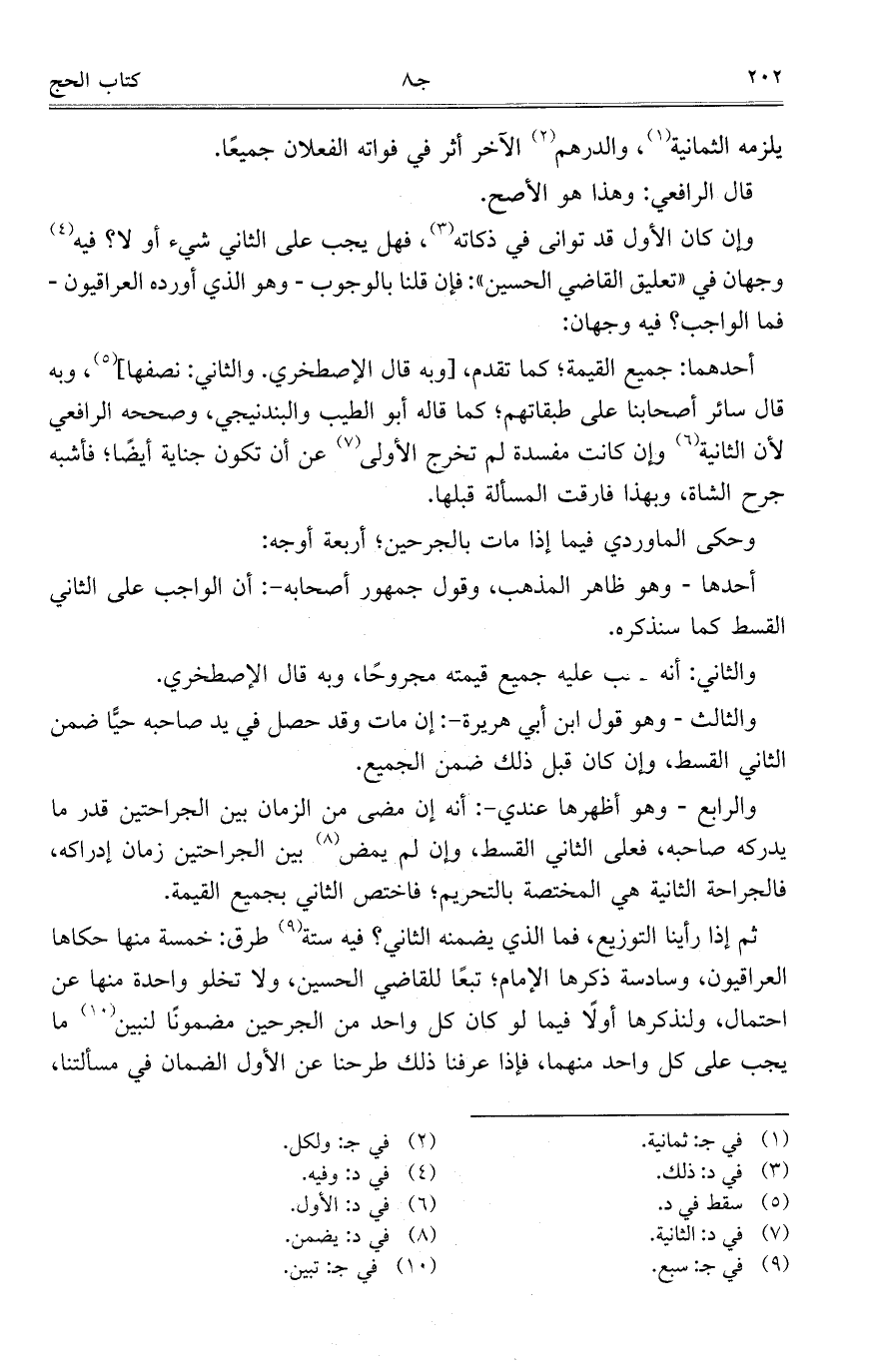 والرابع- وهو أظهرها عندي-: أنه إن مضى من الزمان بين الجراحتين قدر ما يدركه صاحبه، فعلى الثاني القسط، وإن لم يمض بين الجراحتين زمان إدراكه، فالجراحة الثانية هي المختصة بالتحريم؛ فاختص الثاني بجميع القبة.