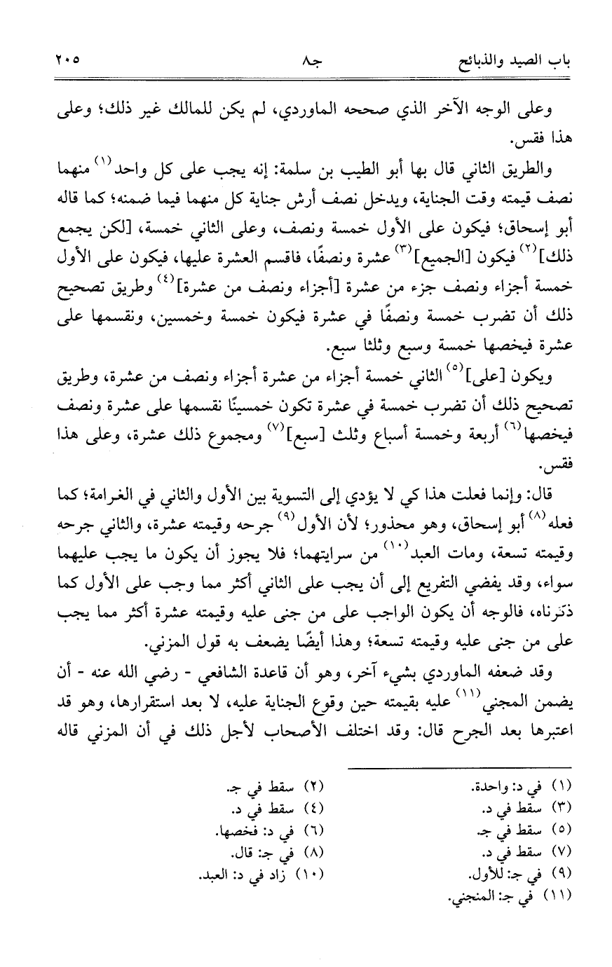 قال: وإنما فعلت هذا كي لا يؤدي إلى التسوية بين الأول والثاني في الغرامة؛ كما فعله أبو إسحاق، وهو محذور؛ لأن الأول جرحه وقيمته عشرة، والثاني جرحه وقيمته تسعة، ومات العبد من سرايتهما؛ فلا يجوز أن يكون ما يجب عليهما سواء، وقد يفضي التفريع إلى أن يجب على الثاني أكثر مما وجب على الأول كما ذكرناه، فالوجه أن يكون الواجب على من جنى عليه وقيمته عشرة أكثر مما يجب على من جنى عليه وقيمته تسعة؛ وهذا أيضاً يضعف به قول المزني.