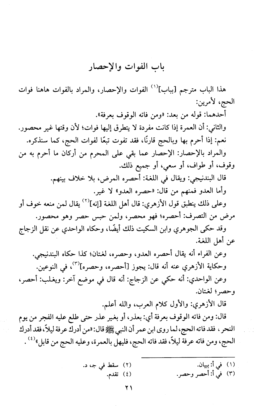 هذا الباب مترجم [بباب] الفوات والإحصار، والمراد بالفوات هاهنا فوات الحج، لأمرين: