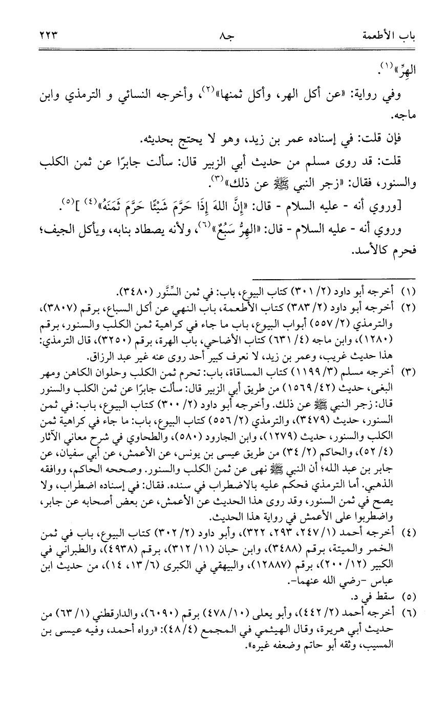 وفي رواية: "عن أكل الهر، وأكل ثمنها"، وأخرجه النسائي والترمذي وابن ماجه.
