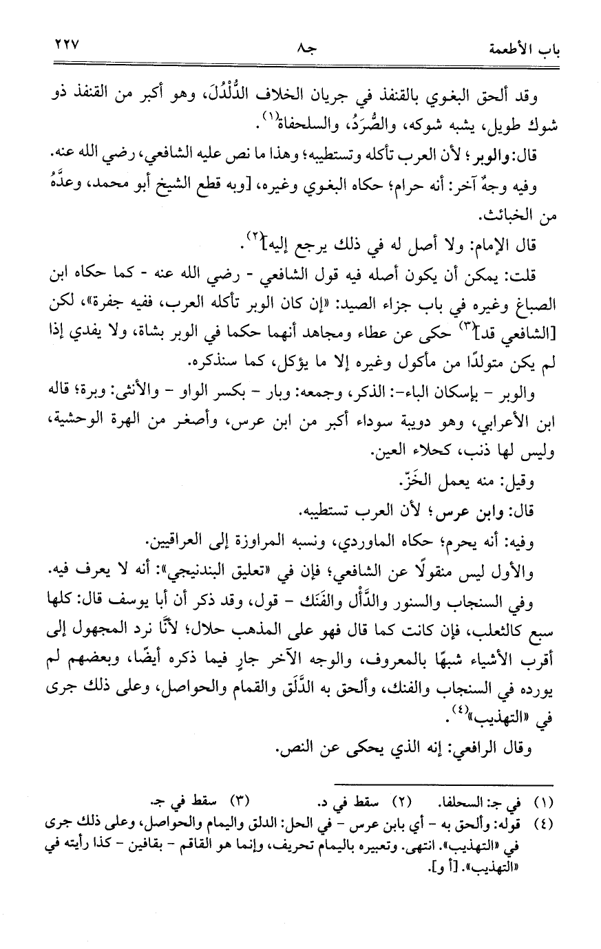 قال: والوبر؛ لأن العرب تأكله وتستطيبه؛ وهذا ما نص عليه الشافعي، رضي الله عنه.