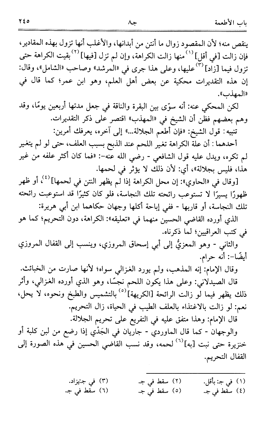 تنبيه: قول الشيخ: "فإن أطعم الجلالة .. " إلى آخره، يعرفك أمرين: