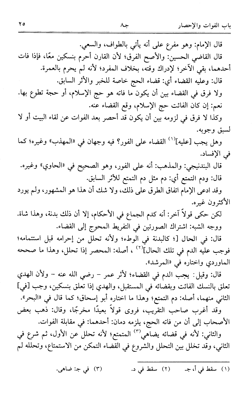 قال القاضي الحسين: والأصح الفرق؛ لأن القارن أحرم بنسكين معاً، فإذا فات أحدهما، بقي الآخر؛ لإدراك وقته، بخلاف المفرد؛ لأنه لم يحرم بالعمرة.