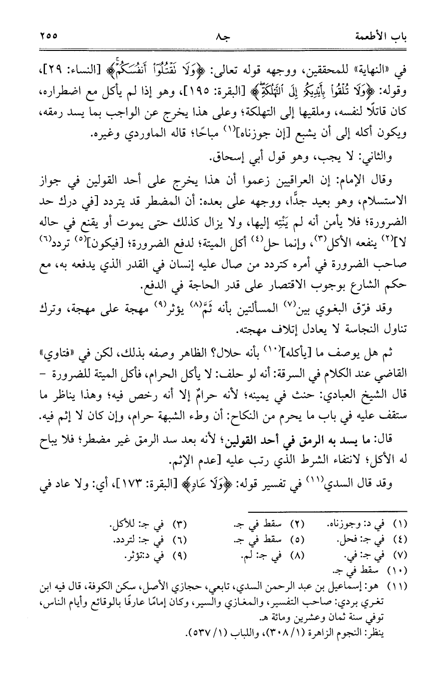 وقد قال السدي في تفسير قوله: {وَلا عَادٍ} [البقرة: 173]، أي: ولا عاد في