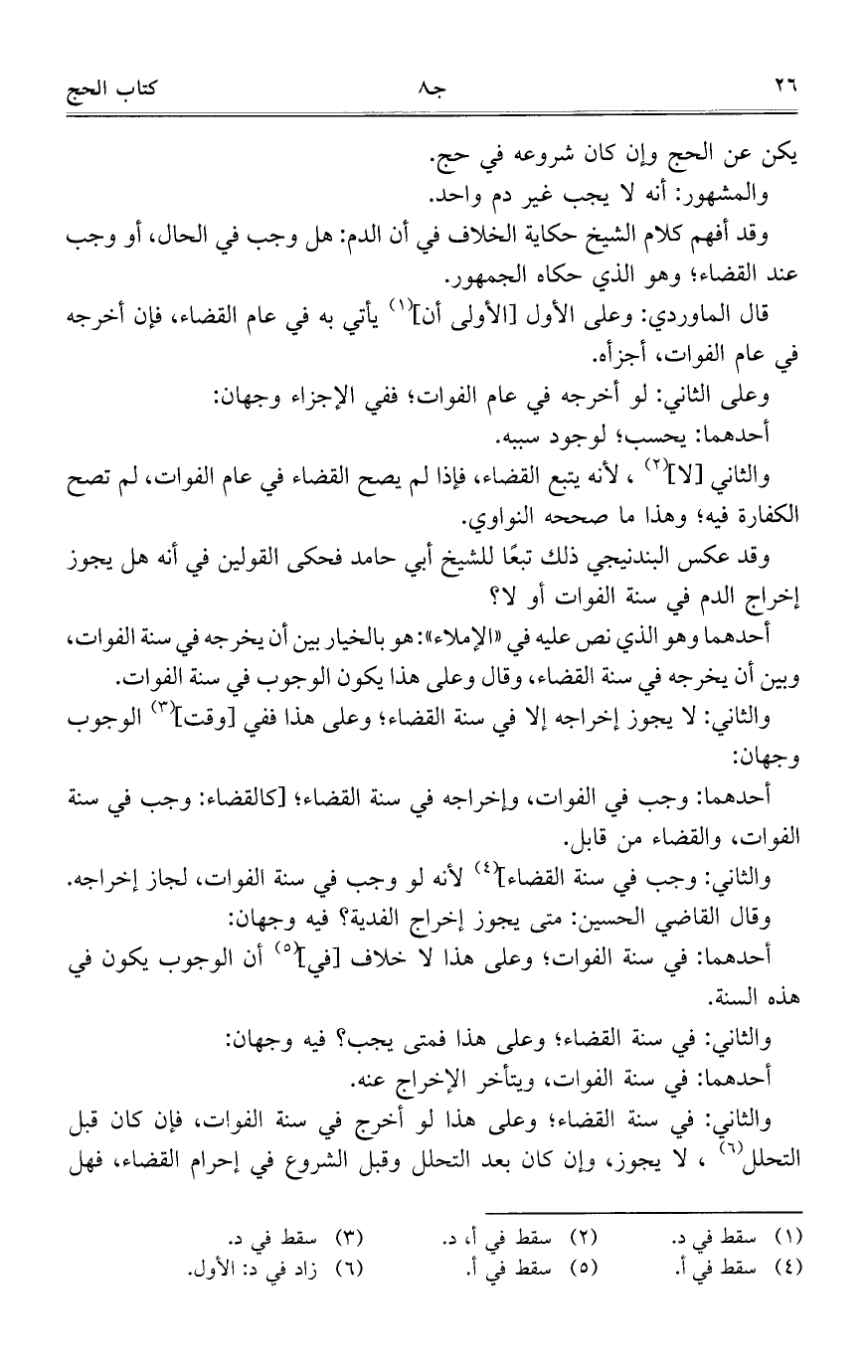 وقد عكس البندنيجي ذلك تبعاً للشيخ أبي حامد فحكى القولين في أنه هل يجوز إخراج الدم في سنة الفوات أو لا؟