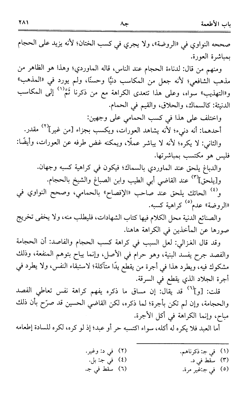 قلت: [و] قد يقال: إن مساق ما ذكره يفهم كراهة نفس تعاطي الفصد والحجامة، وإن لم تكن بأجرة؛ لما ذكره، لكن القاضي الحسين قد صرح بأن ذلك مباح، وإنما الكراهة في أكل الأجرة.