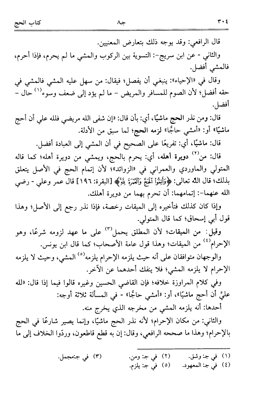 وفي كلام المراوزة خلافه؛ فإن القاضي الحسين وغيره قالوا فيما إذا قال: "لله علي أن أحج ماشياً"، أو: "أمشي حاجاً"- في المسألة ثلاثة أوجه: