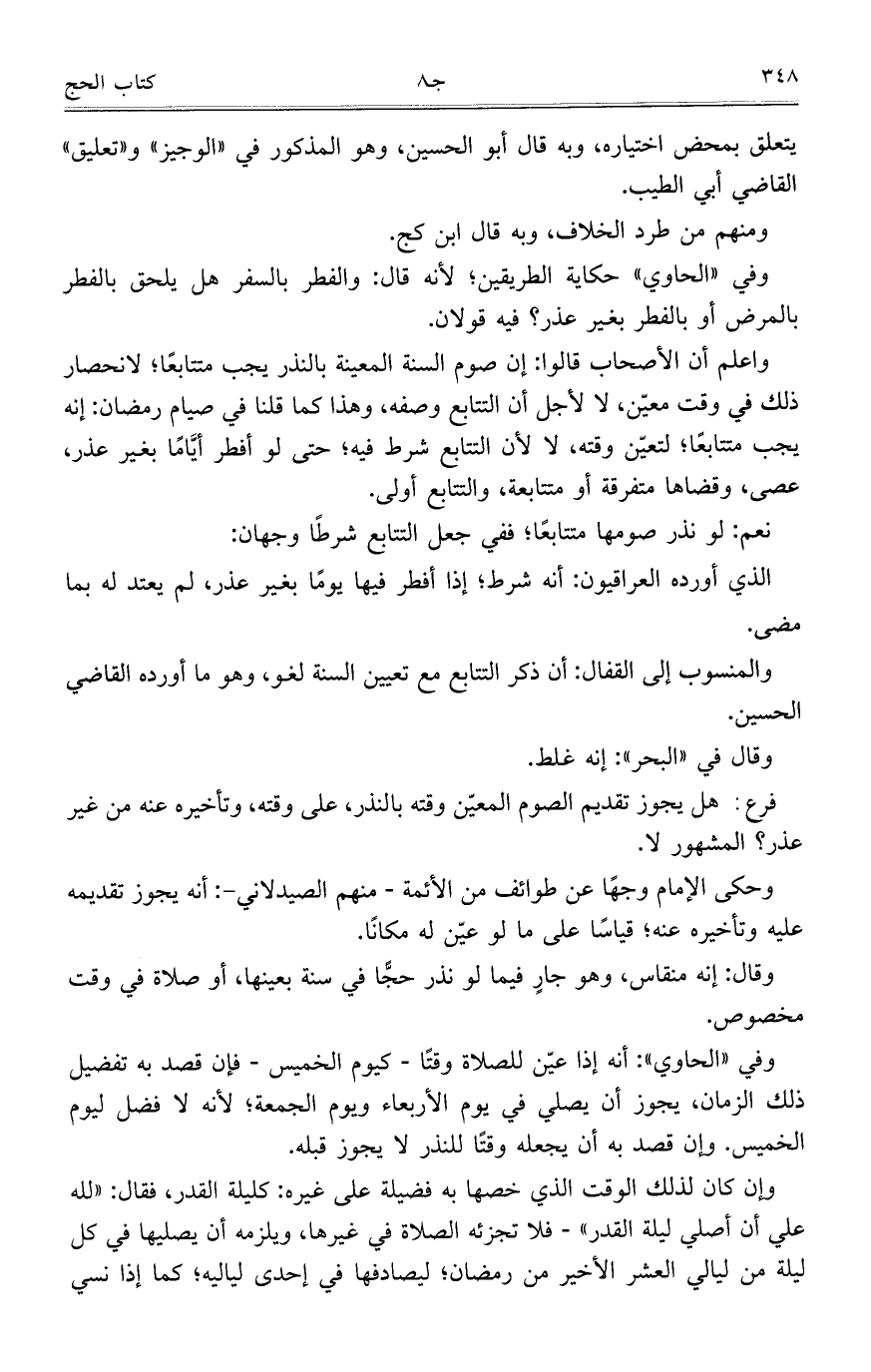 وقال: إنه منقاس، وهو جار فيما لو نذر حجاً في سنة بعينها، أو صلاة في وقت مخصوص.