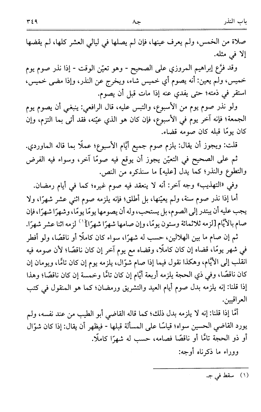 وقد فرع إبراهيم المروزي على الصحيح- وهو تعين الوقت- إذا نذر صوم يوم خميس، ولم يعين: أنه يصوم أي خميس شاء، ويخرج عن النذر، وإذا مضى خميس، استقر في ذمته، حتى يفدي عنه إذا مات قبل أن يصوم.